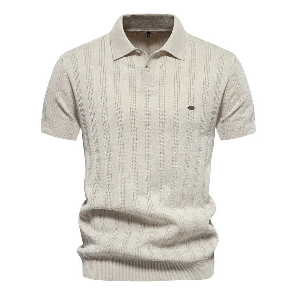 This breathable knit polo blends timeless stripes with a tailored fit — perfect for smart-casual days, dinners, or weekend looks.